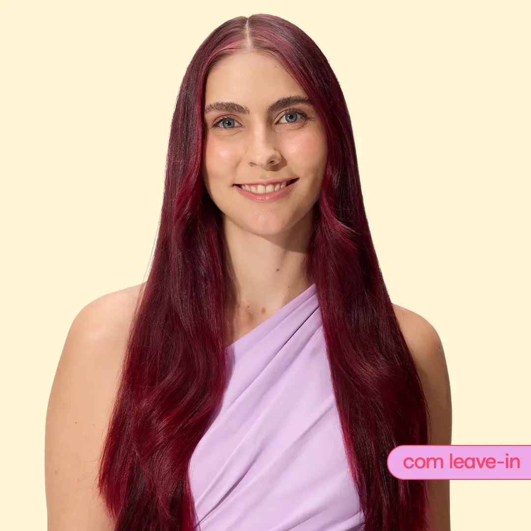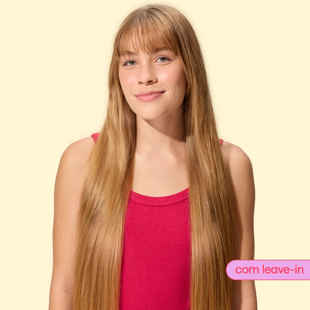 Liso: controla o frizz e deixa os fios com brilho natural sem pesar.